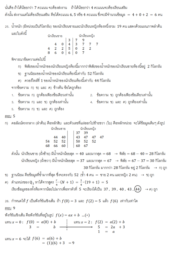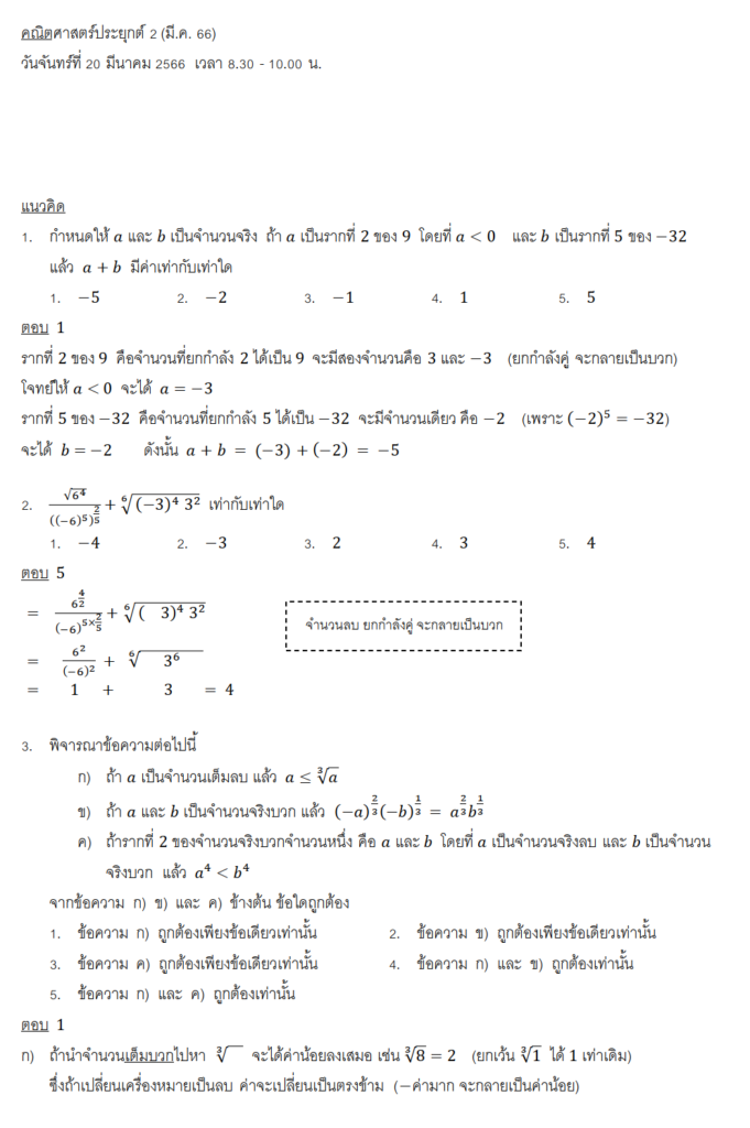 ข้อสอบปี 66 ของคณิต 2 คือพื้นฐานสำคัญที่น้องๆ ทุกคนต้องมีครับ พี่กฤษณ์พบว่าโจทย์เน้นเรื่องเลขยกกำลังและรากที่ n ค่อนข้างเยอะ ซึ่งเป็นบทที่เก็บคะแนนได้ง่ายที่สุดถ้าเราแม่นกฎครับ ในส่วนของสถิติและมัธยฐาน ปีนี้ออกโจทย์ที่ต้องใช้ความสัมพันธ์ระหว่างค่าเฉลี่ย มัธยฐาน และพิสัย เพื่อย้อนกลับไปหาข้อมูลเดิม พี่กฤษณ์บอกเลยว่าปี 66 นี้เหมาะมากสำหรับน้องๆ ที่เพิ่งเริ่มฝึกทำข้อสอบเก่า เพราะเป็นปีที่โจทย์ตรงไปตรงมาที่สุดและช่วยสร้างความมั่นใจก่อนไปลุยปีที่ยากกว่าครับ