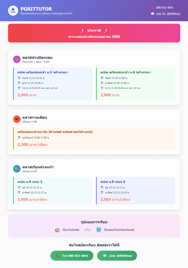 หากต้องการเรียนแบบส่วนตัว กรุณาติดต่อผ่าน LINE ID : @969TLNOY ได้ตลอด 24 ชม. เพื่อสอบถามเวลาที่ยังว่าง